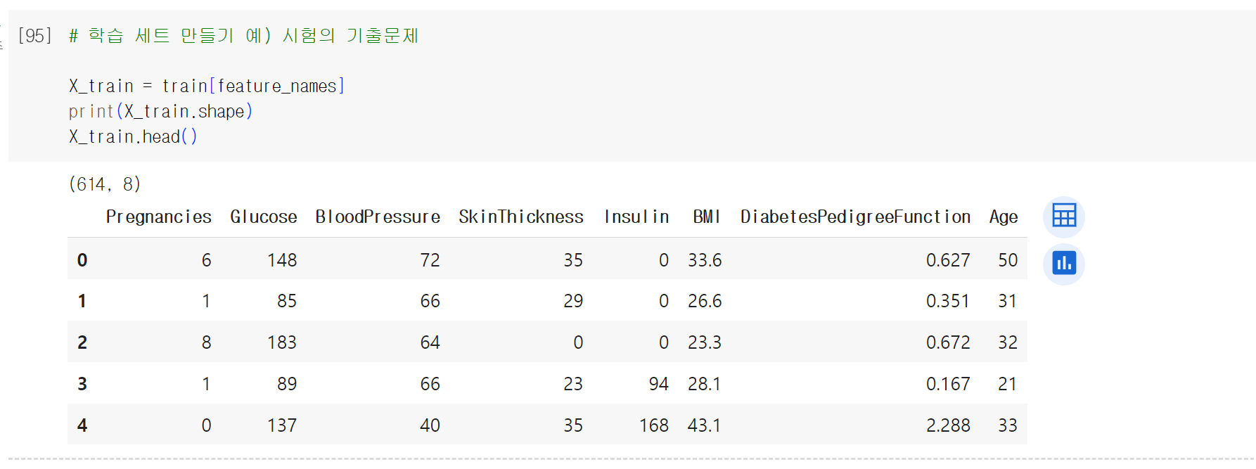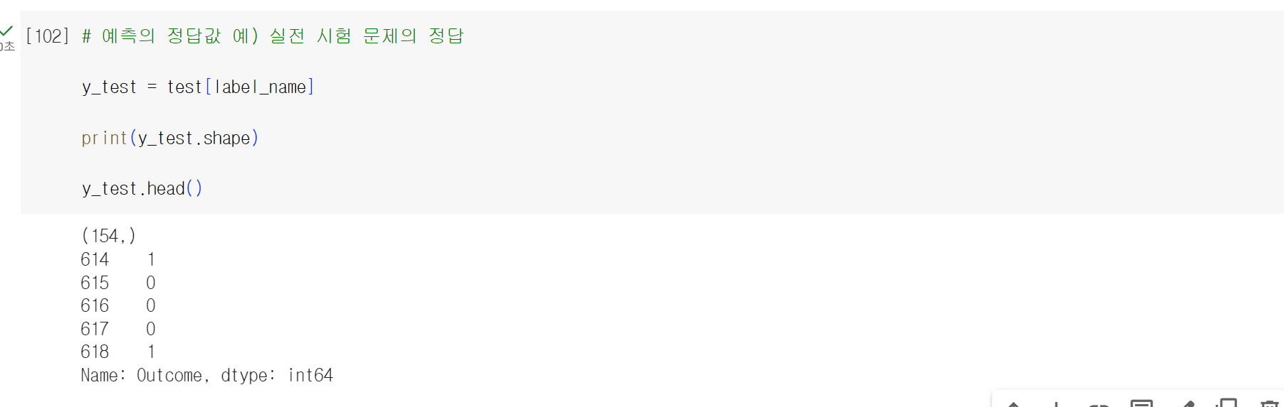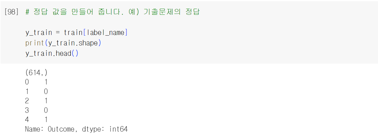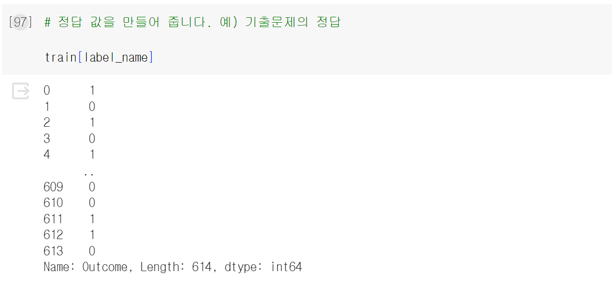 여기서 outcome은 우리가 예측해야 될 데이터이다.