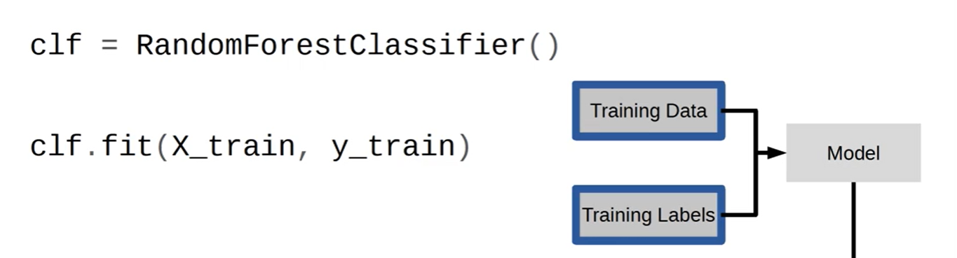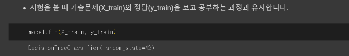 clf.fit 로 x_train와 y_train 에 각각 문제와 정답을 넣어 모델을 학습시킨다.