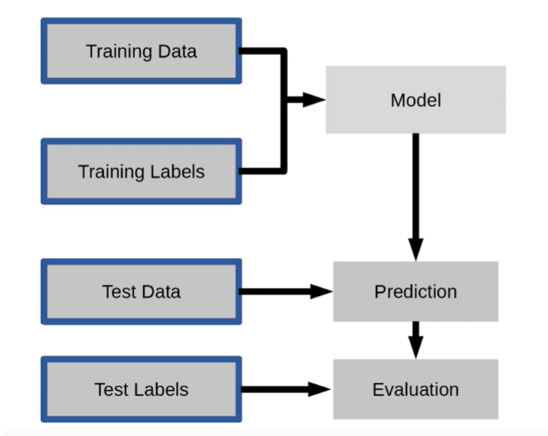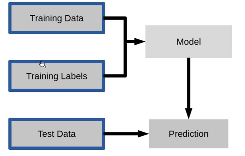 training data 와 training labels 을 통해 반복적으로 학습을 시키는 과정을 모델링이라고 한다.비유하자면, 기출 문제를 푸는 것과 같은 과정이라고 생각할 수 있다.
