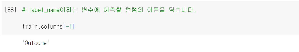 이제 학습, 예측에 사용할 컬럼명을 담아주도록 하겠다.