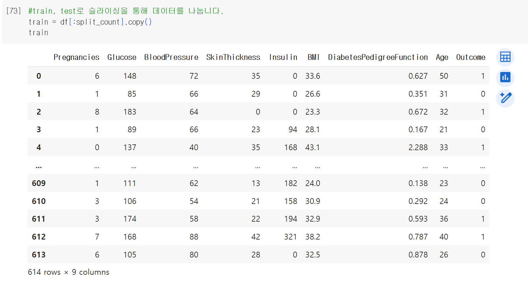 .copy를 통해서 0번부터 613번까지의 값을 담아주었다.