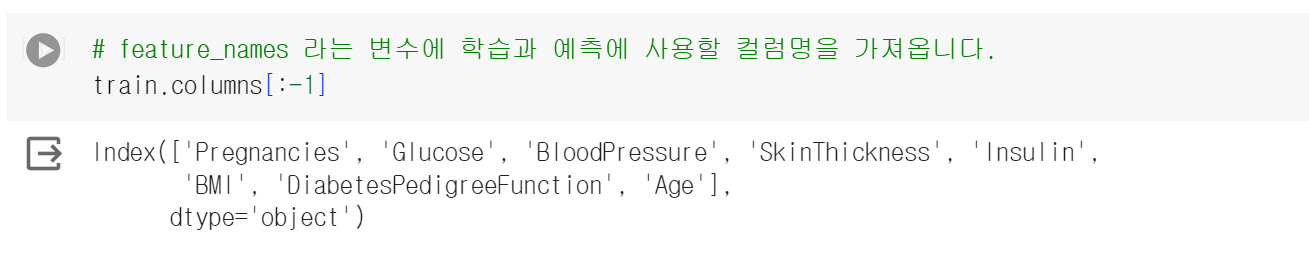 > feature names에는 학습과 예측에 사용될 데이터들을 담아주었다.