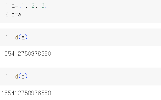 ->변수 a는 [1, 2, 3]리스트가 저장된 메모리의 주소를 가리키게 됨.