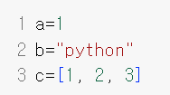 a=[1, 2, 3]이라 하면 [1, 2, 3]값을 가지는 리스트 데이터(객체) 자동으로 메모리에 생성