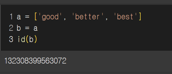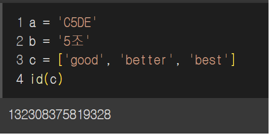 cf) id๋ ๋ณ์๊ฐ ๊ฐ๋ฆฌํค๊ณ ์๋ ๊ฐ์ฒด์ ์ฃผ์ ๊ฐ์ ๋ฆฌํดํ๋ ํ์ด์ฌ์ ๋ด์ฅ ํจ์