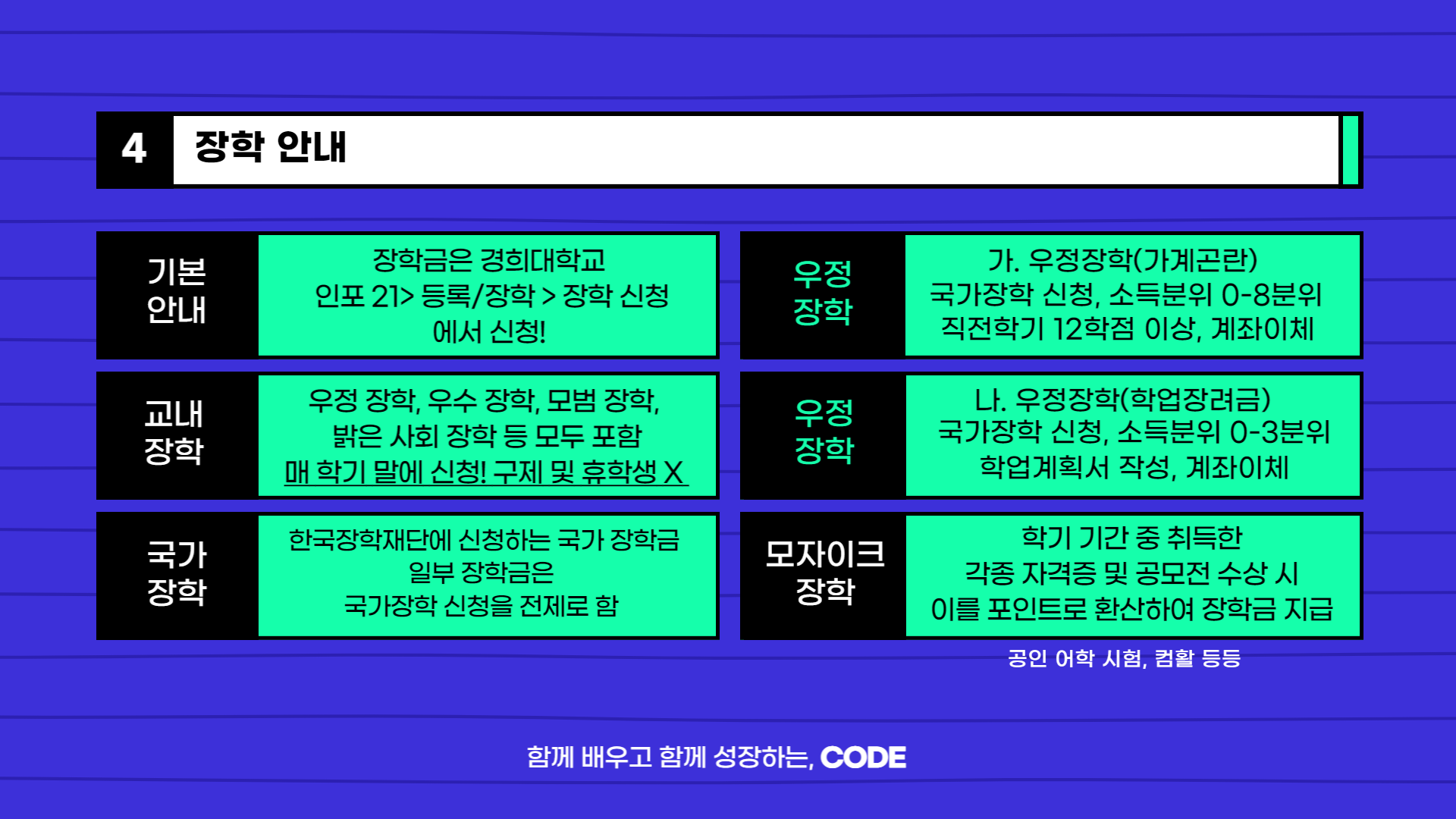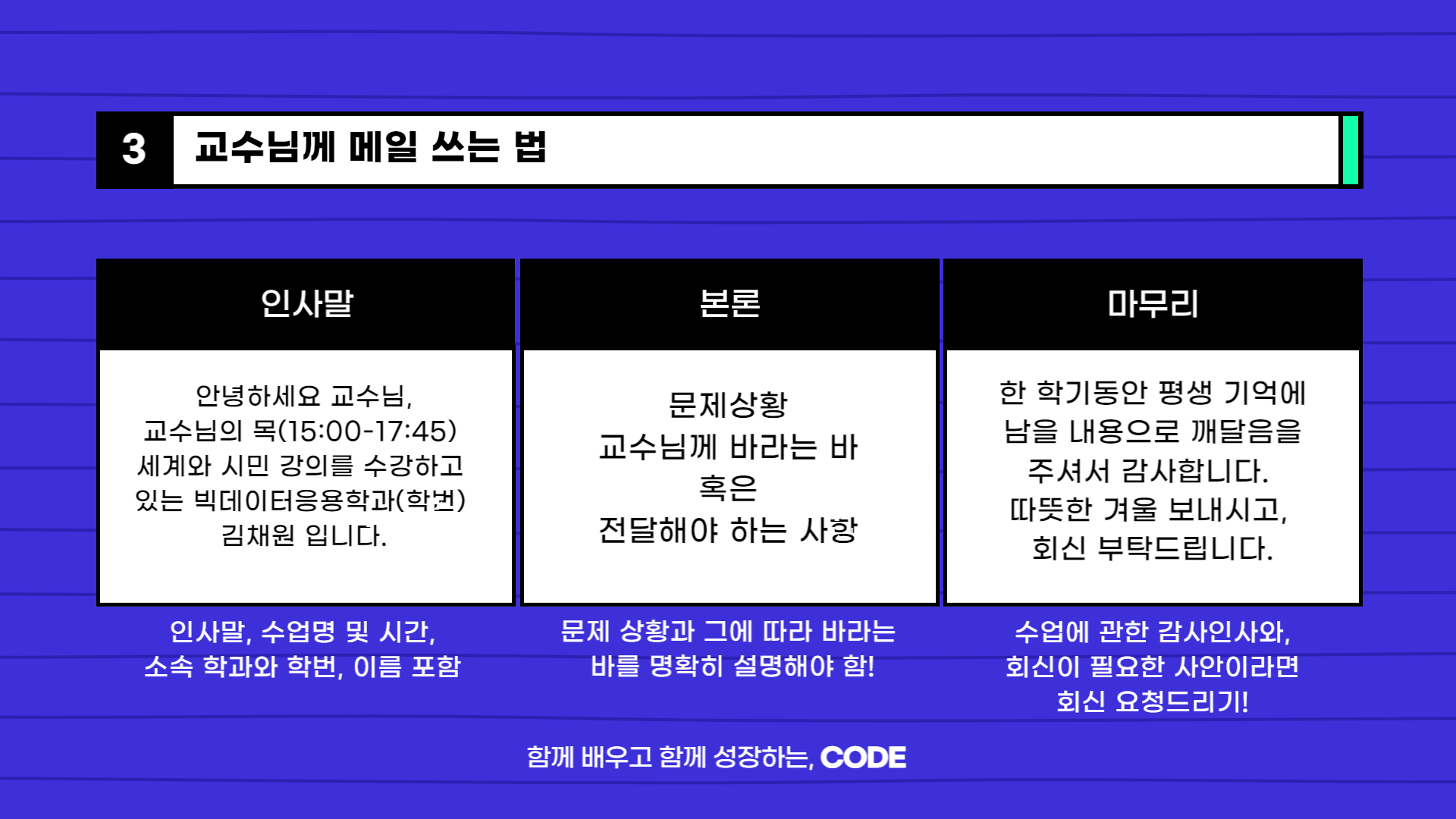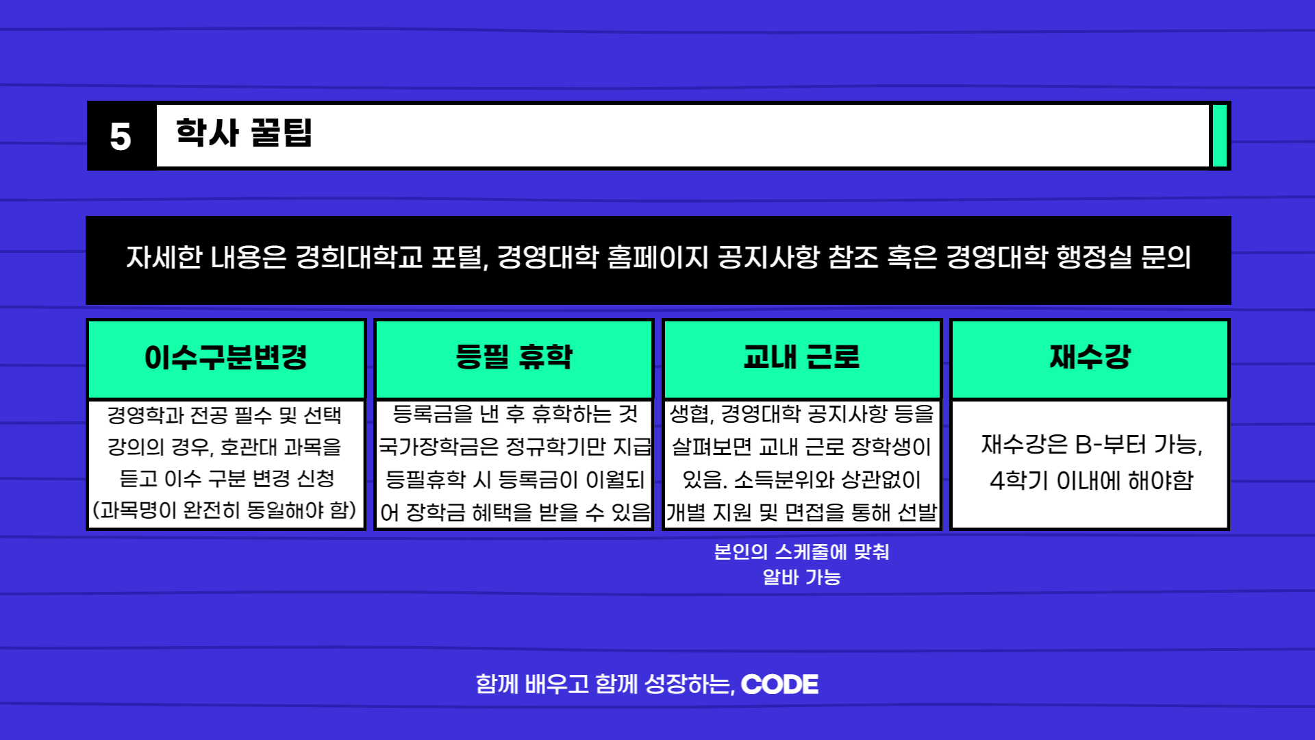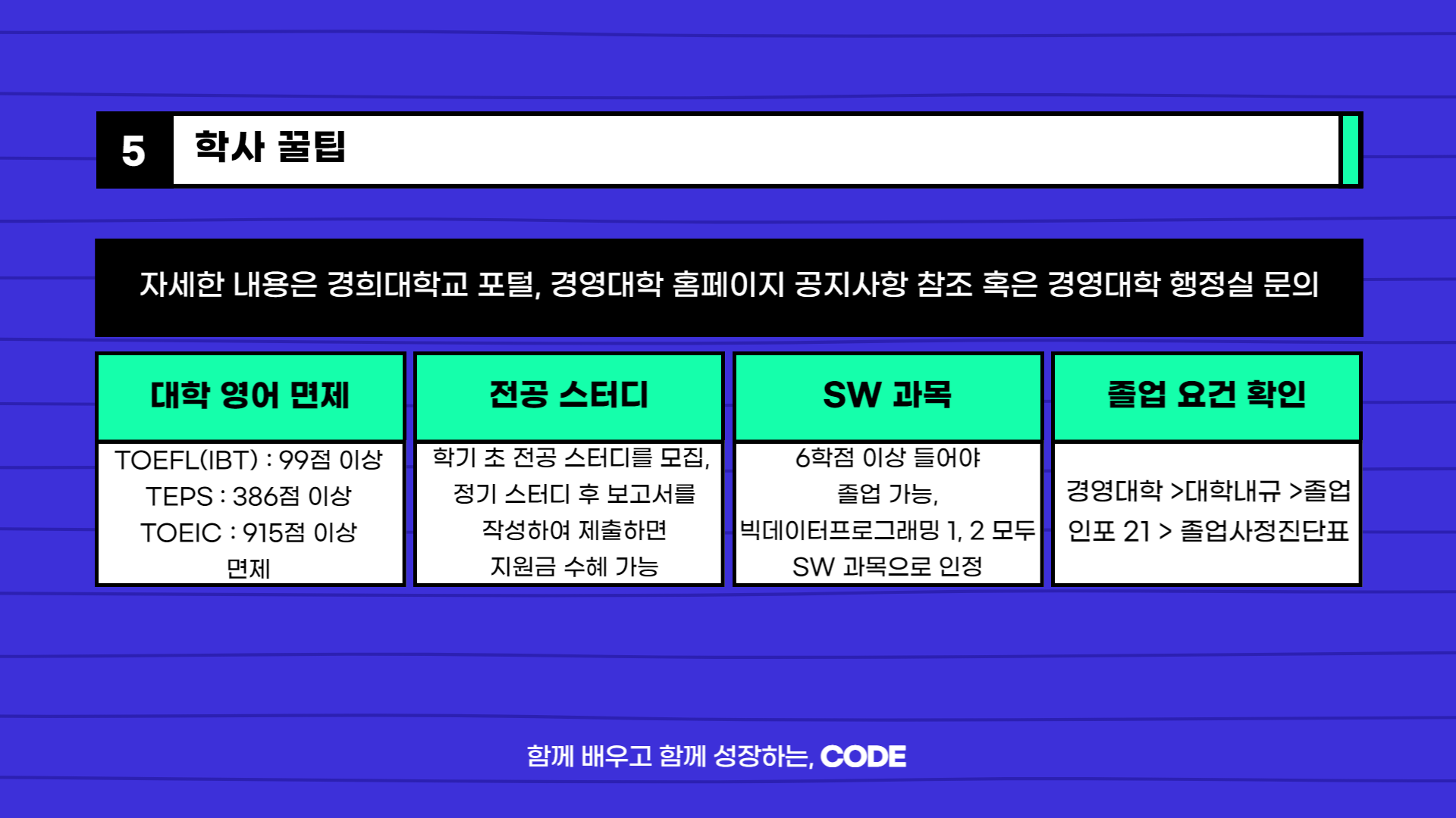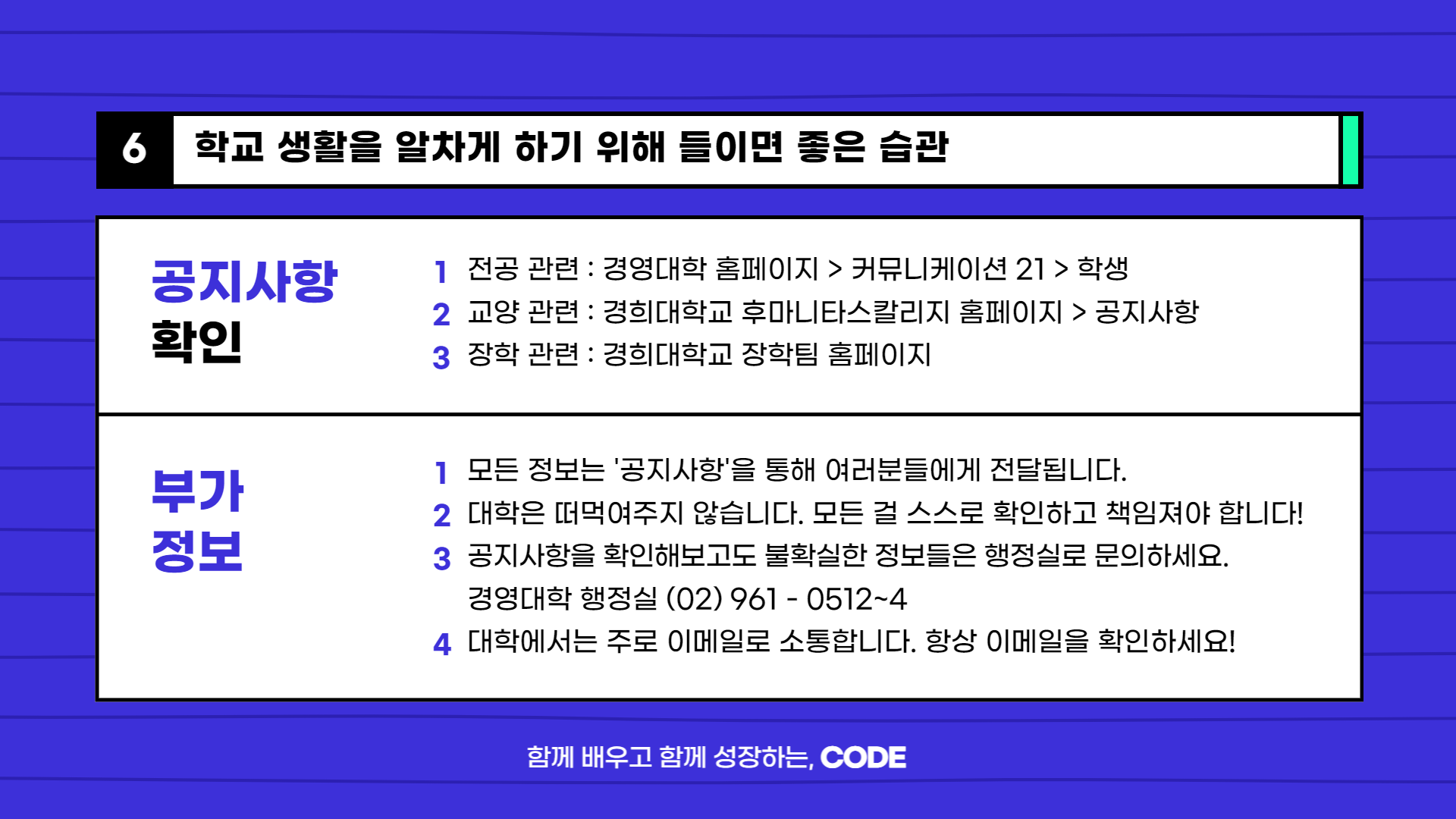 CODE 활동에 대한 내용뿐만 아니라 다양한 꾸러 팁들까지 모두 잘 챙겨가셨나요?