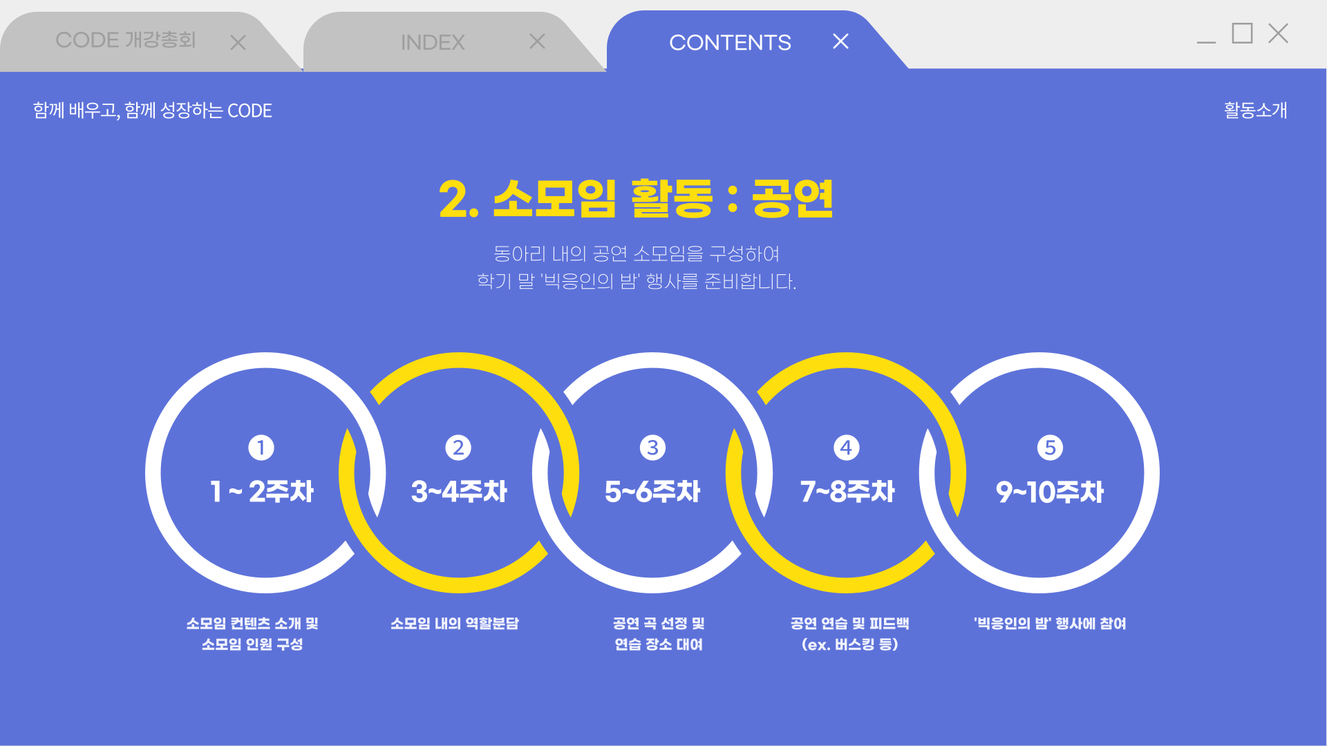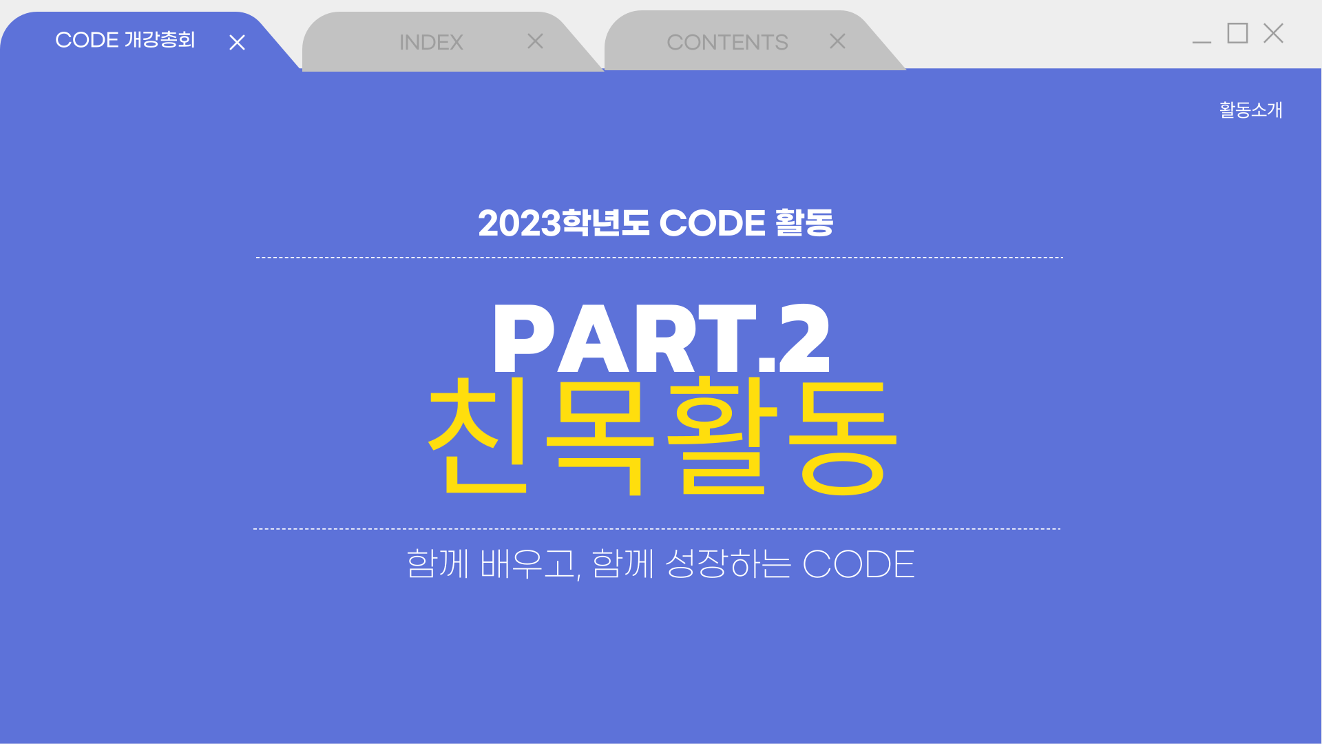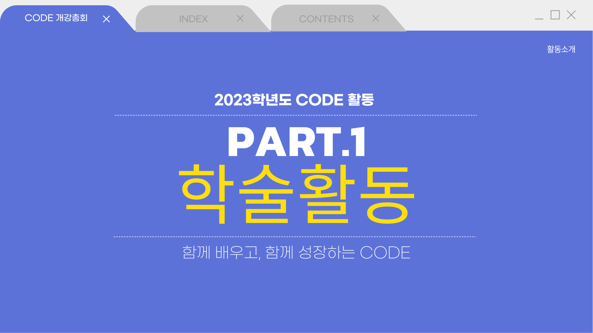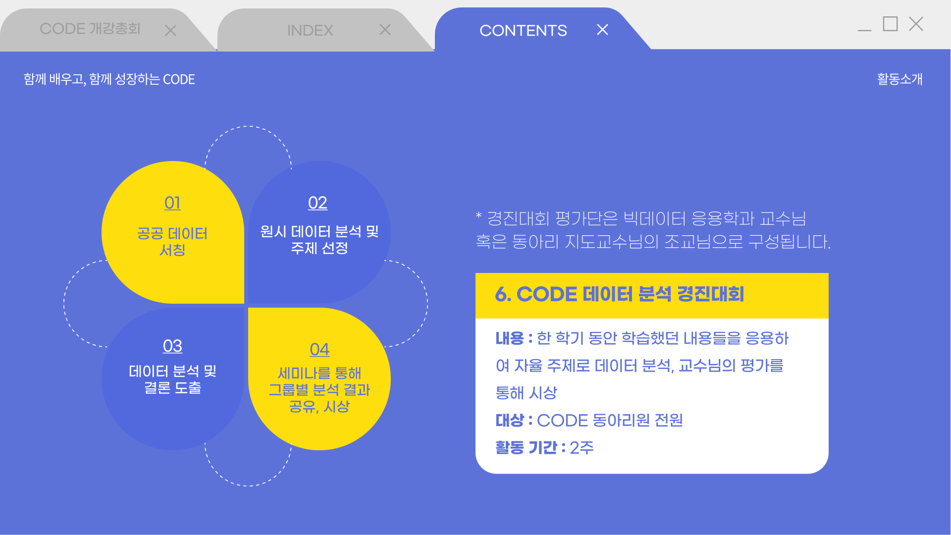 여기까지가 1학기 CODE의 활동 소개였습니다.