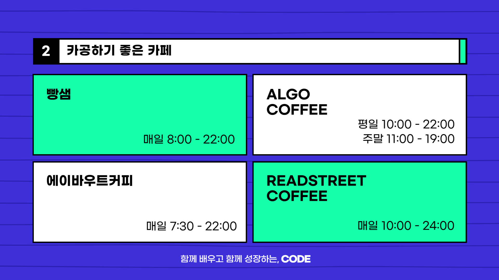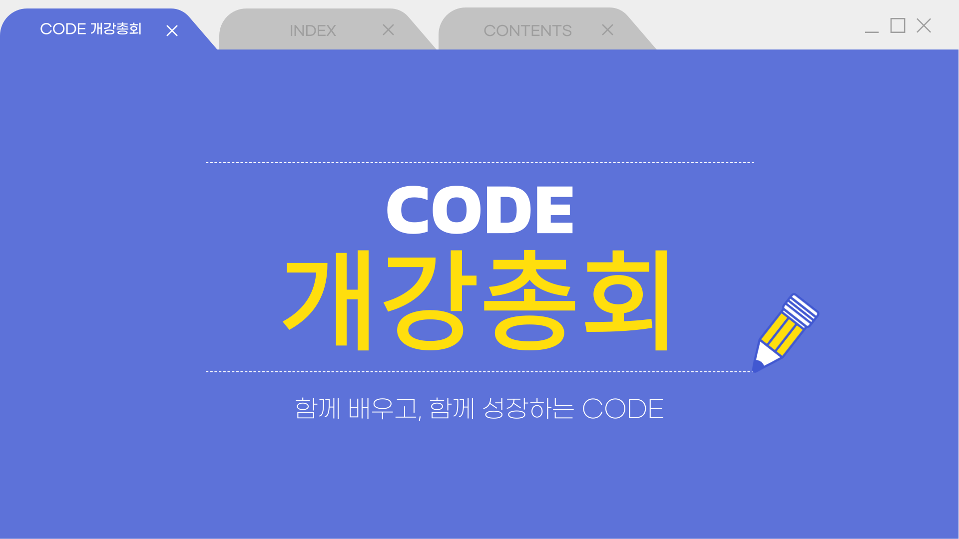 안녕하세요, 함께 배우고, 함께 성장하는 CODE입니다!