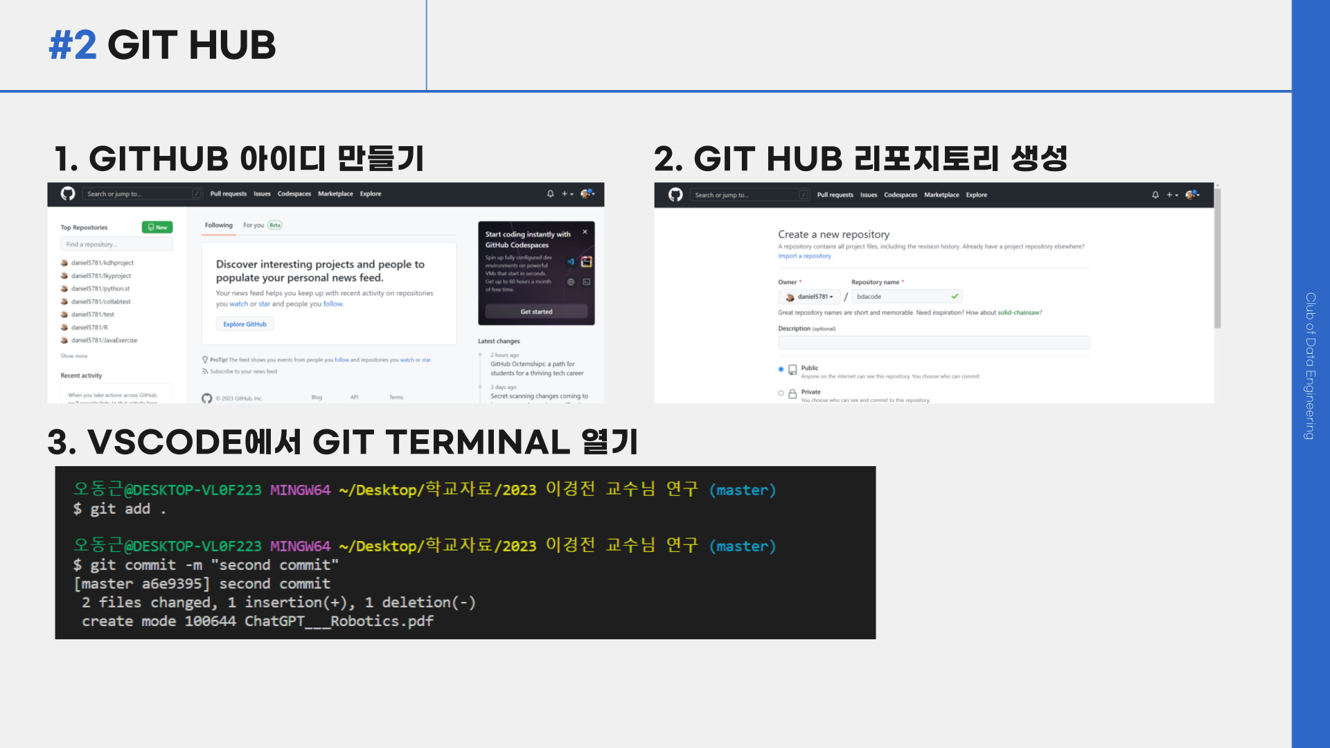 다음 순서로는 깃허브 활용 TIP이었는데요, 총무부장 오동근 학우님께서 설명해주셨습니다!