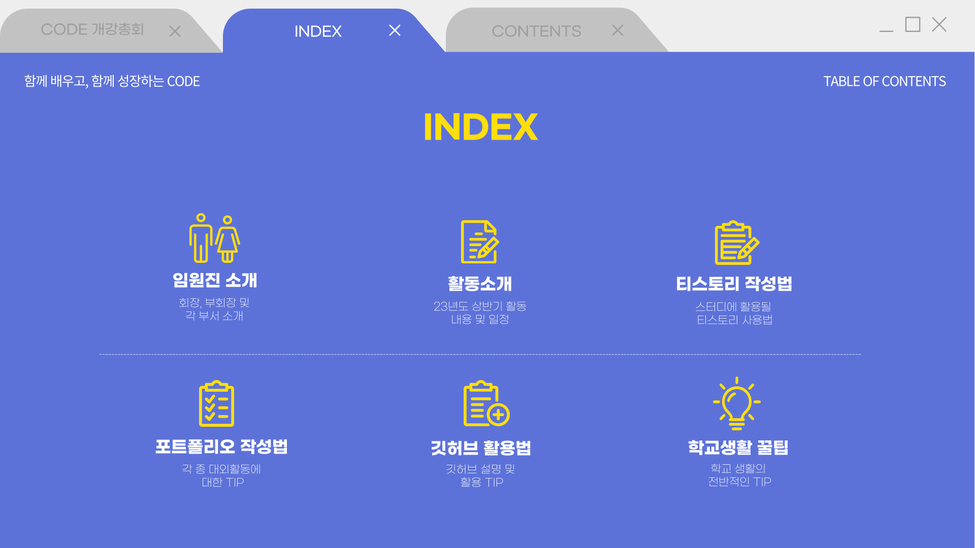 지금까지, CODE의 개강 총회 설명이었습니다.