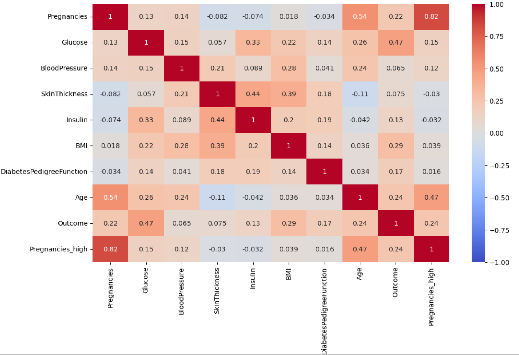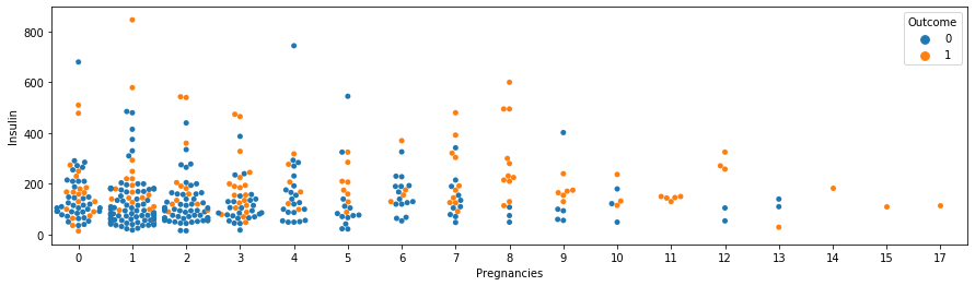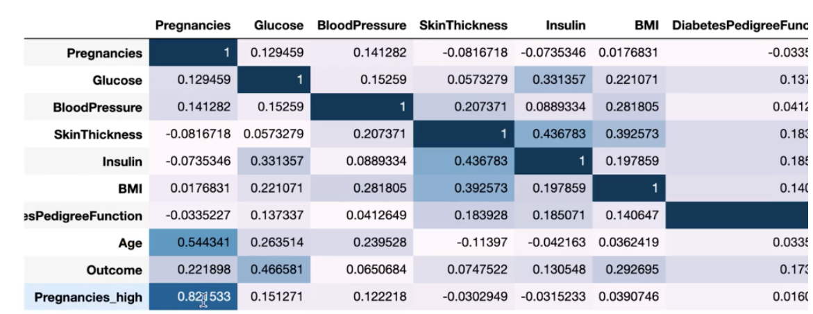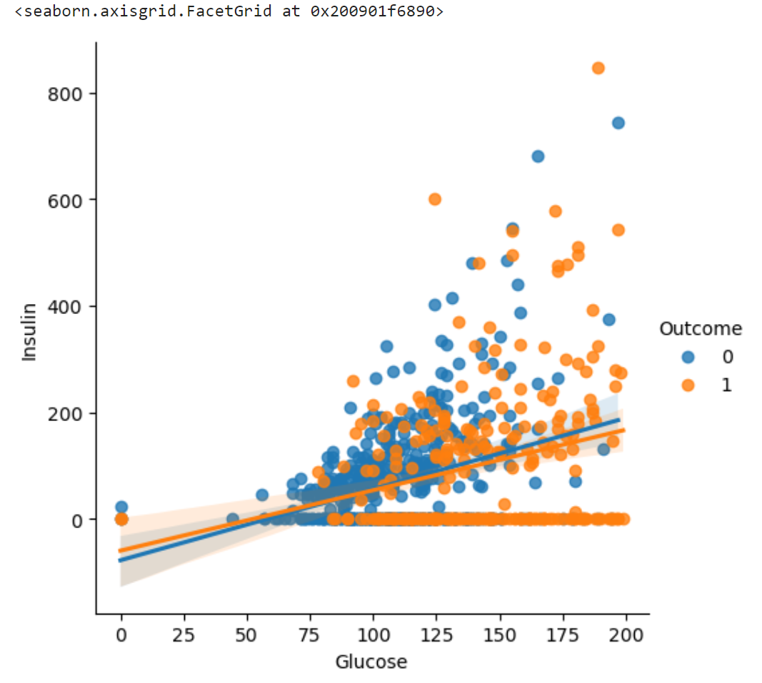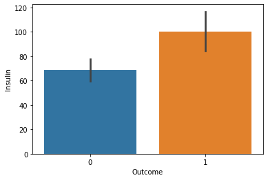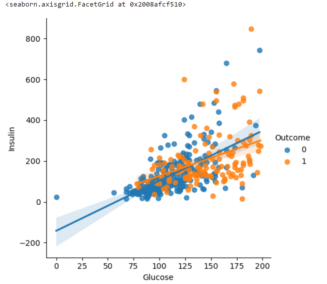 이로써 Insulin에 대한 Glucose와 Outcome의 상관계수가 높아진 결과를 출력하였다.