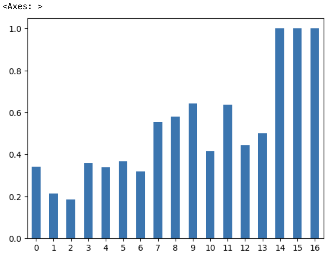 막대 그래프를 그리기 위해 위에 있던 기존 코드에 ".bar()"를 추가한다. 그러면 이런 막대 그래프가 생겨난다.