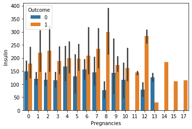 그러나 위의 차트는 Insulin 수치가 0인 데이터들을 포함하였다.
