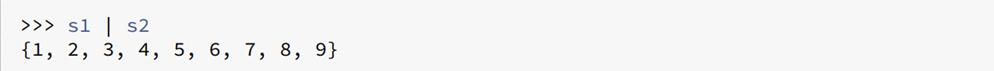 ‘|’ ๋ฅผ ์ฌ์ฉํ๋ฉด ํฉ์งํฉ์ ๊ตฌํ ์ ์๋ค. ์ด๋ 4, 5, 6 ์ฒ๋ผ ์ค๋ณตํด์ ํฌํจ๋๊ฐ์ 1๊ฐ์ฉ๋ง ํํ๋๋ค.