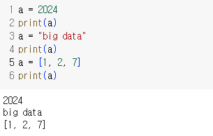 데이터를 출력하는 print 문의사용 예는 다음과 같다.
