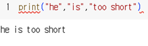 쉼표를 사용하여 문자열을 띄어 쓸 수 있다.