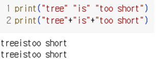 따옴표로 둘러싸인 문자열을 연속해서 쓴 것은 +연산을 한 것과 같다.