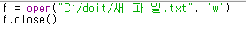 열었기 때문에‘새파일.txt’ 라는 이름의 새로운 파일이 현재 디렉터리에 생성되었다.