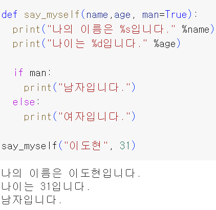 #a,b에 두개의 입력값을 받으며 출력값은 (리턴 값)은 입력값을 더한 것이 저장됨.
