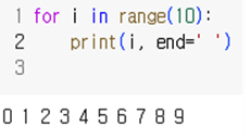 한 줄에 결괏값을 계속 이어서 출력하려면 매개변수 end 를 사용해 끝 문자를 지정해야 한다.