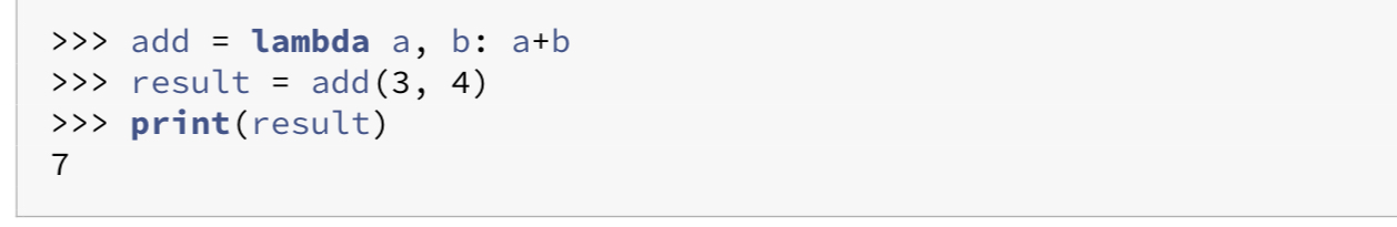 add는 2개의 인수를 받아 서로 더한값을 리턴하는 lambda 함수이다.