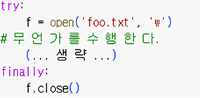 오류를 처리하기 위한 try except 문의 기본 구조이다.