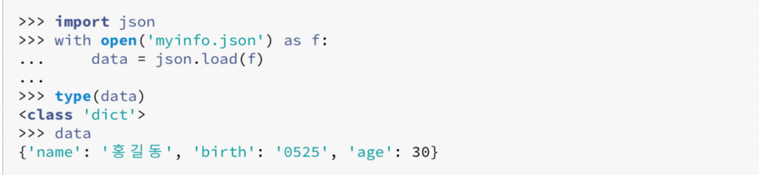 JSON 파일을 읽을 때는 이 예시처럼 json.load(파일_객체)를 사용한다.