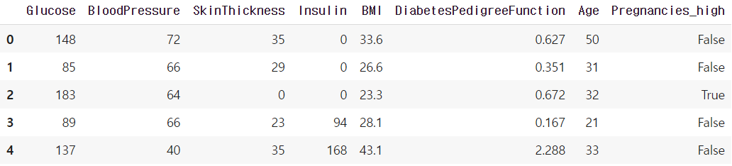 # Pregnancies_high로 Pregnancies 항목을 대체합니다.