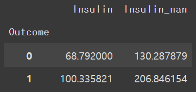 # Insulin_nan 열의 값에 로그를 취합니다. 이 때, np.log1p 함수를 사용하여 0인 경우를 대비합니다.