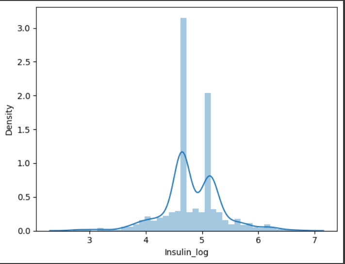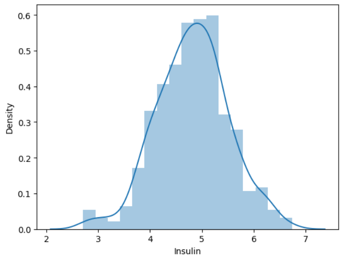 결측치를 제거한 Insulin값에 log를 취하고 그 값들을 살펴보면 다음과 같다.