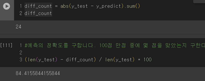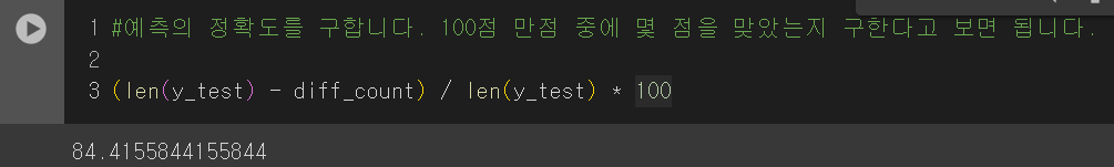 # 예측의 정확도를 구합니다.