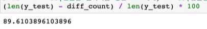 그 결과, 성능이 89% 정도의 꽤 준수한 수준으로 나타난 것을 확인할 수 있었습니다.