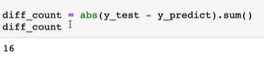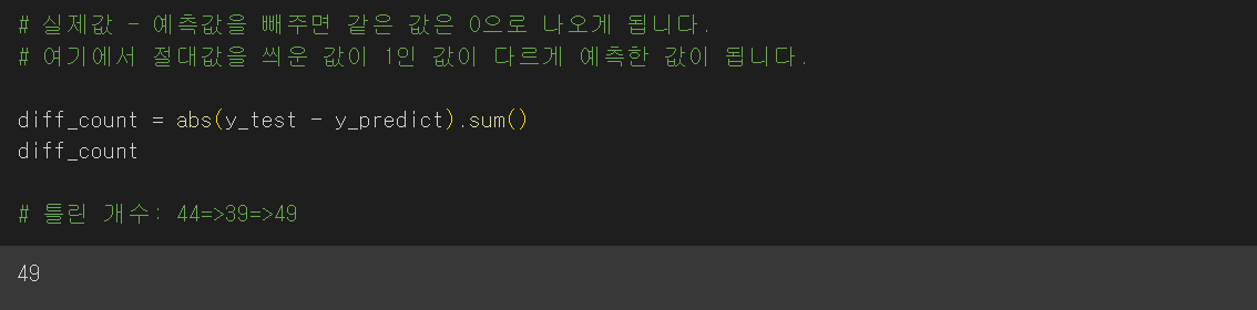 실제값에서 예측값을 뺀 값, 즉 틀린 개수를 구합니다.