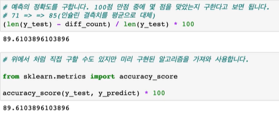중앙값으로 대체하니 정확도가 기존 85%에서 89%로 향상된 것을 확인할 수 있습니다.