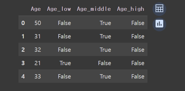 나이를 기준으로 '25세 미만', '25세부터 60세', '60세 초과'의 3개의 카테고리를 만들어보겠습니다.