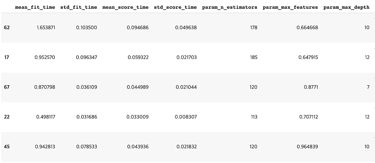 n_iter는 랜덤한 조합을 몇 번이나 시도할지를 결정하는데 기본 10번을 반복한다. 여기서는 100을 넣었으니 100번을 시도한다.