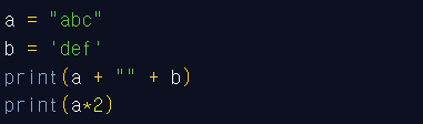 # 문자열의 연산 ==> 문자열끼리만 가능! 문자와 숫자를 더하려고 하면 에러가 발생한다.