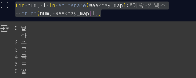 # enumerate함수는 리스트의 원소에 순서값을 부여해주는 함수이다.