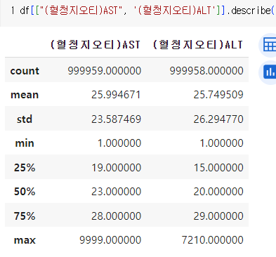 df[["(혈청지오티)ALT","(혈청지오티)AST"]].describe()
