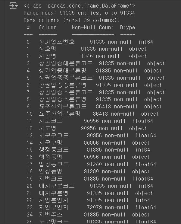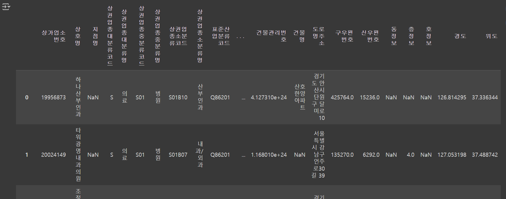 df = pd.read_csv('/content/drive/MyDrive/data/소상공인시장진흥공단_상가업소정보_의료기관_201909.csv',low_memory= False, encoding="cp949")