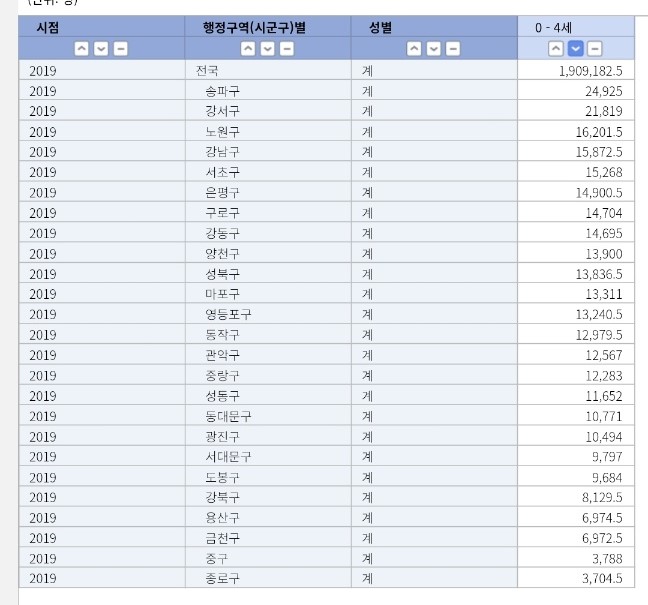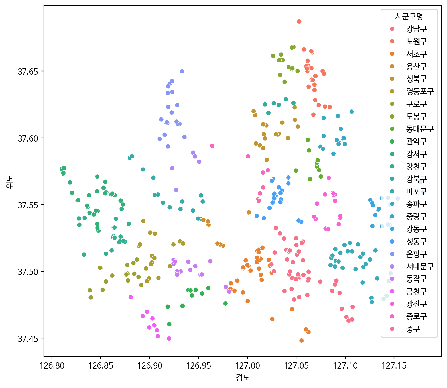 하위권에 중구, 종로구, 용산구 강북구 등의 유사한 분포를 지닌다.
