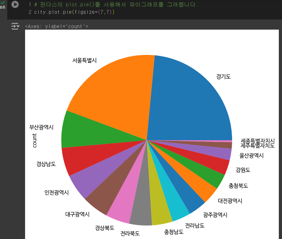 * - pie 차트의 경우, city 와 city_normalize의 그래프 모두 똑같이 나온다.