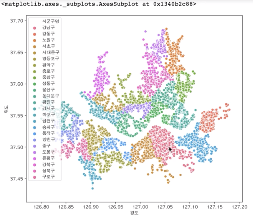 - 어린이집, 소아과의 두 scatterplot 그림을 겹치는 것, 지도위에 scatterplot을 시각화하는데에