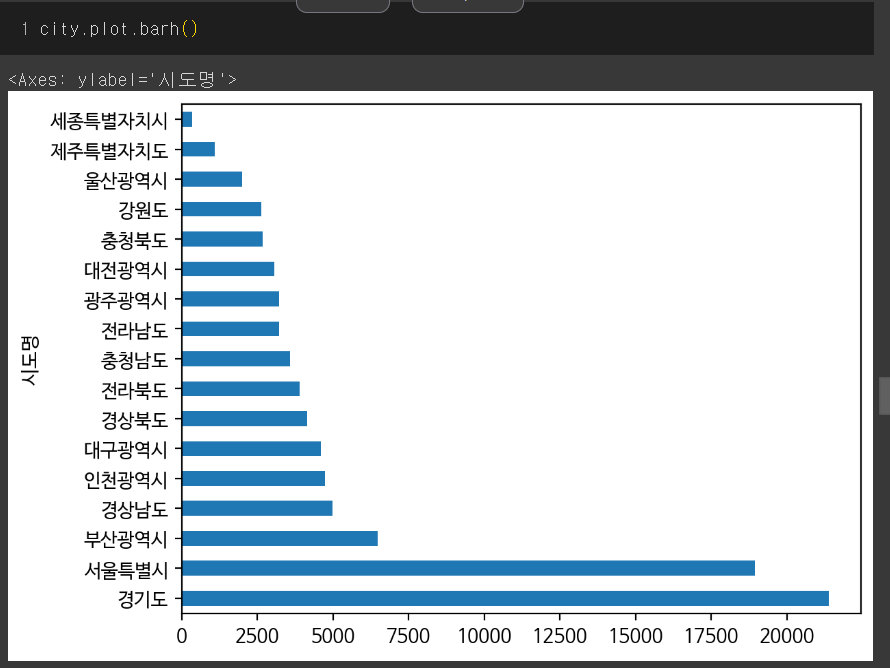 + 참고 ) value_counts를 통해 얻어낸 시리즈를 시각화해서 분석할 수도 있다.