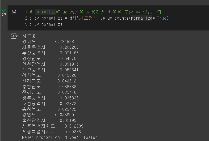 * normalize=True 옵션을 사용하면 비율을 구할 수 있다.