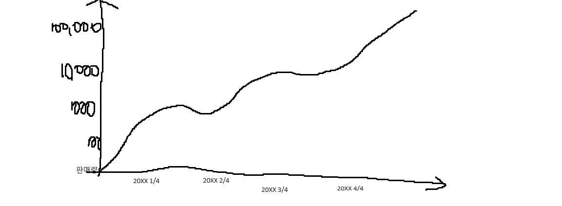 앞서 보았던 것과 같이 판매액이 증가추세를 이루다가 감소하는 것을 볼 수 있다.