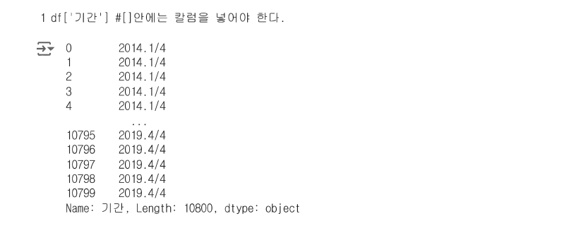현재 '기간' column을 불러와준 후 어느 곳을 기준으로 split을 해줄 지 결정한다.