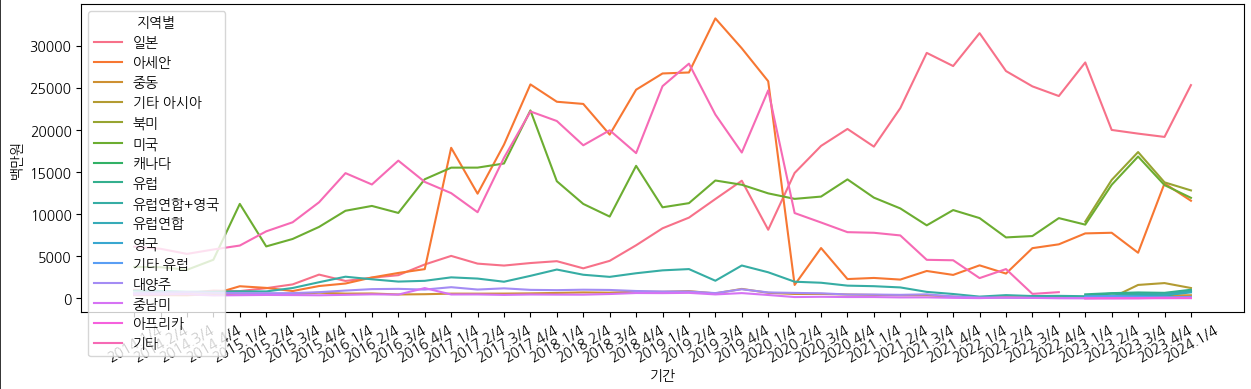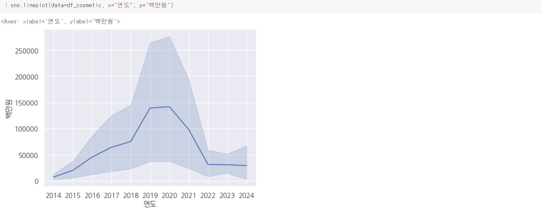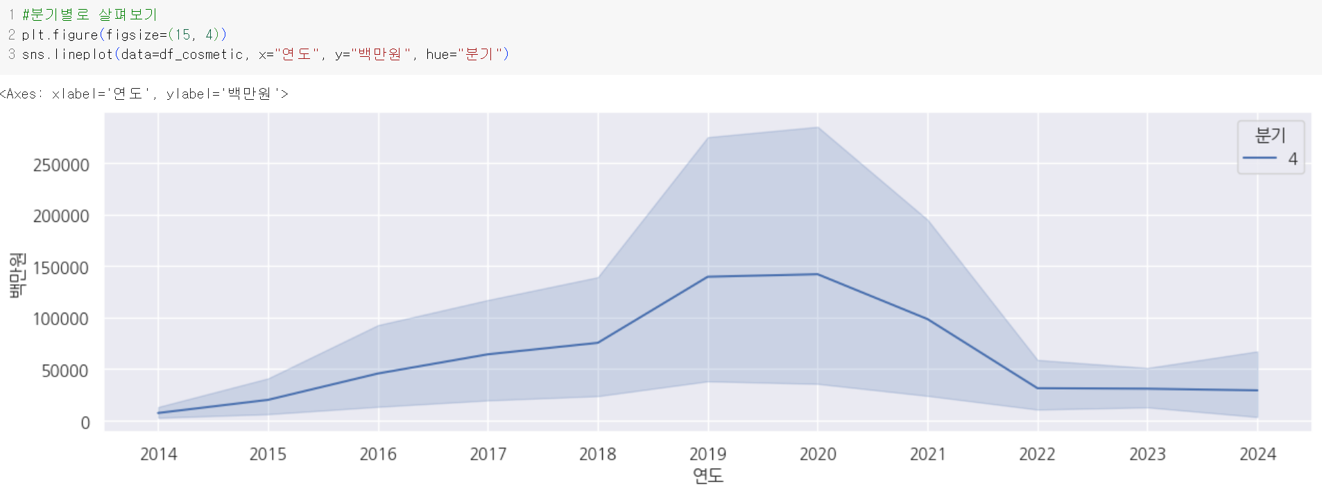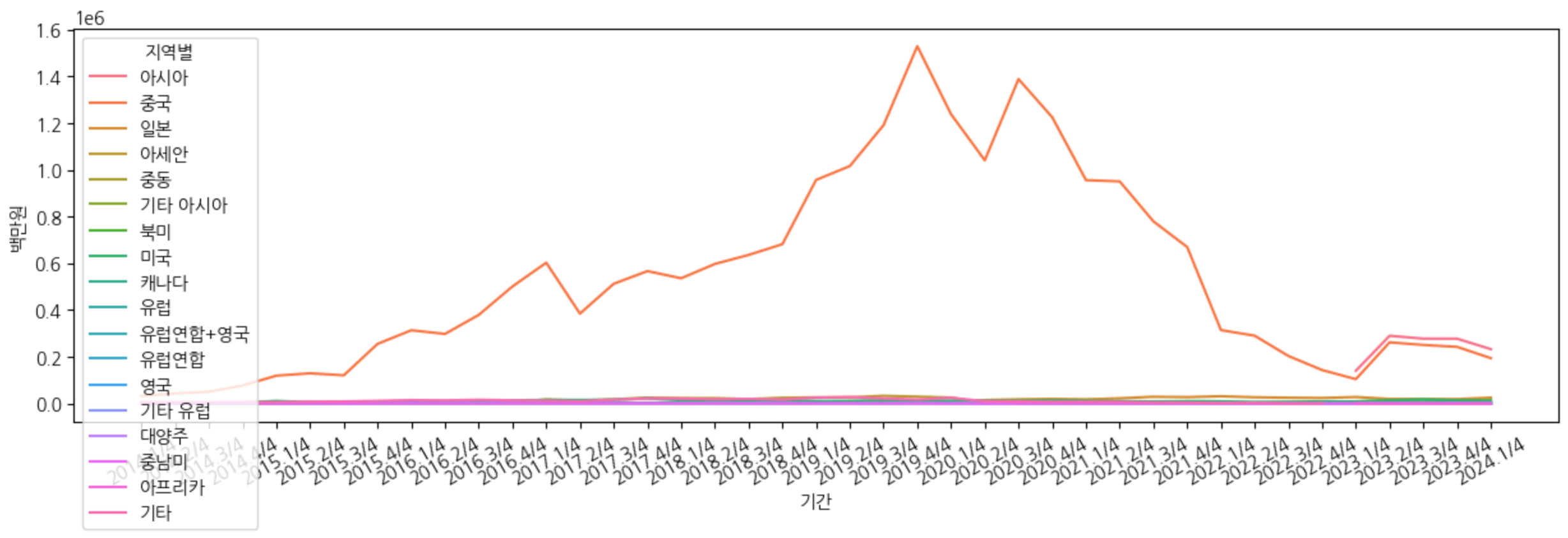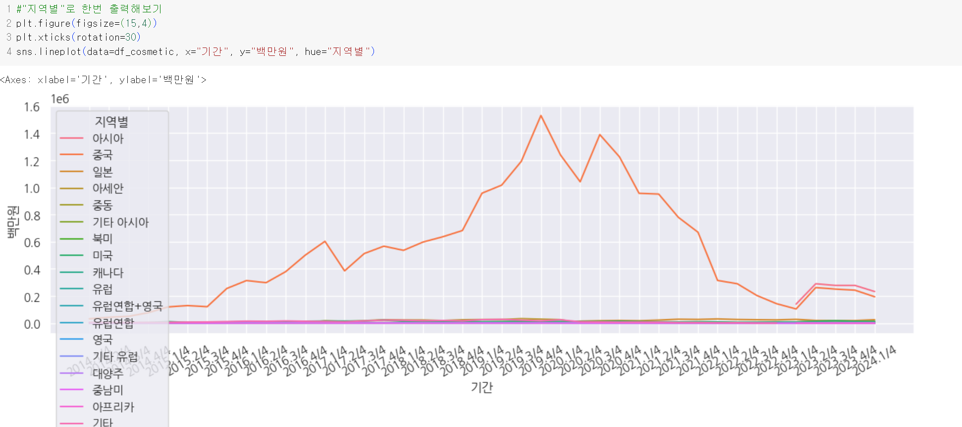 이젠 본격적으로 K-Beauty의 성장세를 보기위해 '화장품' 항목의 그래프를 그려보도록 하겠다.
