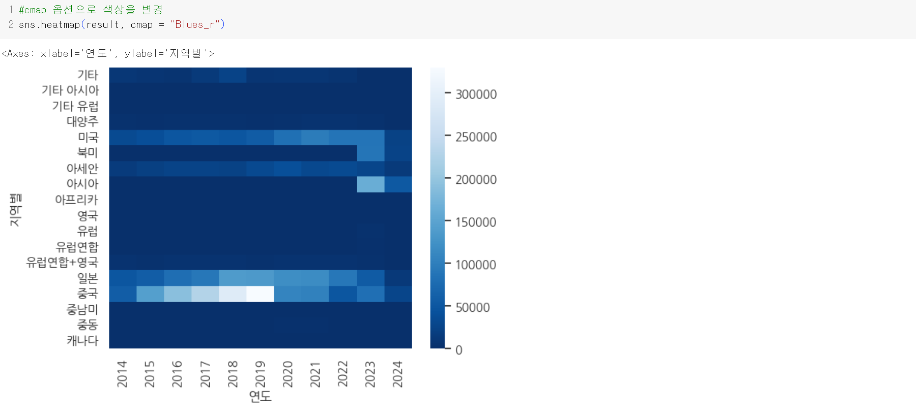 cmap 옵션을 사용하여 히트맵의 색상을 변경해보았다.