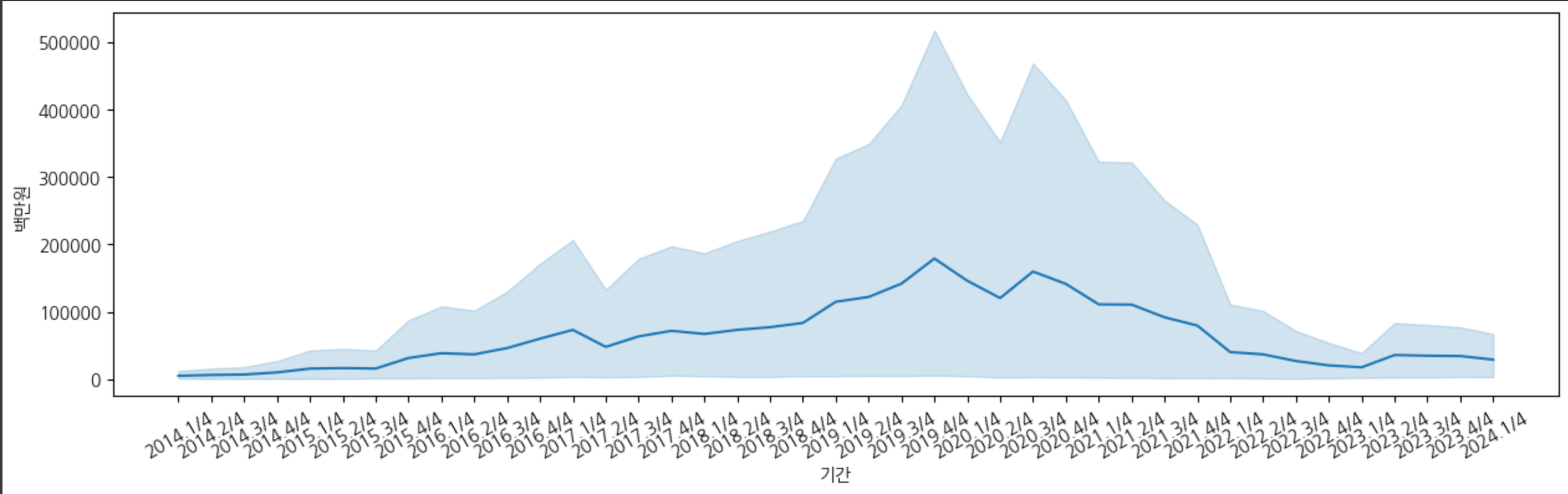 여기서 plt.xtick는 아래 기간부분 글씨가 겹치지 않게 하기 위해 글자를 회전시키는 기능이다.